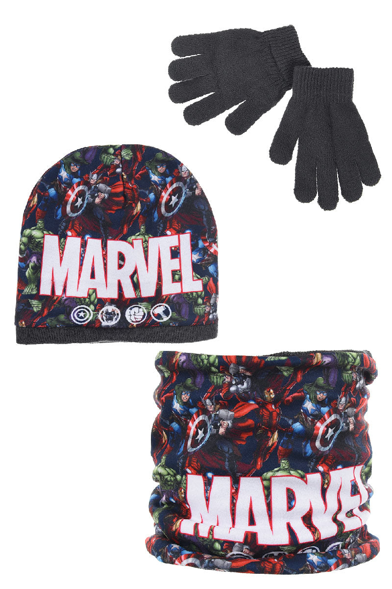 Marvel Avengers Kids 3pc Hat Snood & Gloves (Grey)